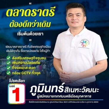 มุกดาหาร เลือกตั้งนายกฯ และ ส.ท.เมืองมุกดาหาร เปิด “กลุ่มมุกเมืองใหม่” รวม 4 กลุ่ม 3 รุม 1 อาสาพัฒนา “เปลี่ยน” เมืองมุกให้ดีขึ้น