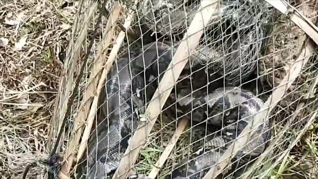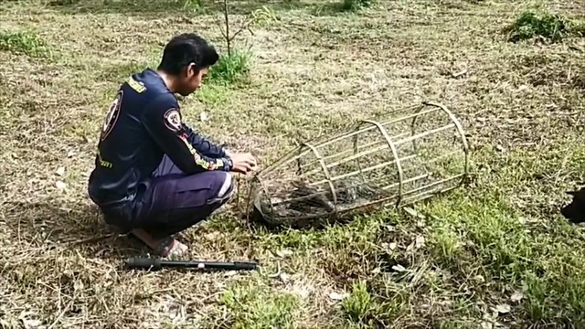 เมื่อเจ้าหน้าที่ไปถึงสวนทุเรียน ก็พบมีงูเหลือมตัวใหญ่ติดอยู่ในไซดักปลา จึงเข้าทำการเข้าแกะเชือกผูกที่ไซดักปลา แล้วใช้อุปกรณ์ในการจับงู ทำให้งูเหลือมเลื้อยออกมาจากไซดักปลา แล้วจึงใช้อุปกรณ์ในการจับงูกดหัวงูเอาไว้ ก่อนใช้มือจับส่วนหัวของงูเหลือมไว้ได้ นำมาวัดได้ความยาว 2.50 เมตร ก่อนนำใส่กระสอบเตรียมไปปล่อยคืนสู่ป่าธรรมชาติที่อยู่ห่างไกลบ้านเรือนผู้คนต่อไป