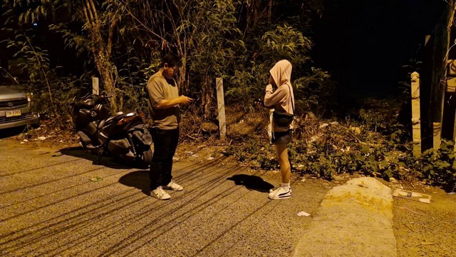 ที่เกิดเหตุพบผู้เสียหายเป็นชาวไทยทราบชื่อภายหลังคือ น.ส.วิชญาดา ( สงวนนามสกุล) อายุ 21 ปี ให้ข้อมูลว่าได้มีคนร้ายเป็นผู้ชายสวมเสื้อกั๊กวินจยย.รับจ้าง ขี่จยย.มา ประกบด้านข้างแล้วถามตนเองว่าจะไปไหม ซึ่งตัวเองตอบไปว่าสามารถเดินไปเองได้เพราะไม่ไกล ก่อนจะรีบเดินหลบหนี แต่ผู้ก่อเหตุยังคงขี่รถตามมาจอดขวาง แล้วชักอาวุธปืนมาขู่ ยังไม่ทันพูดอะไร แต่ตนตกใจกลัวจึงวิ่งหนีเข้าไปในโรงแรม เพื่อขอความช่วยเหลือจากชาวบ้าน คนร้ายจึงรีบเร่งเครื่องหลบหนีไป