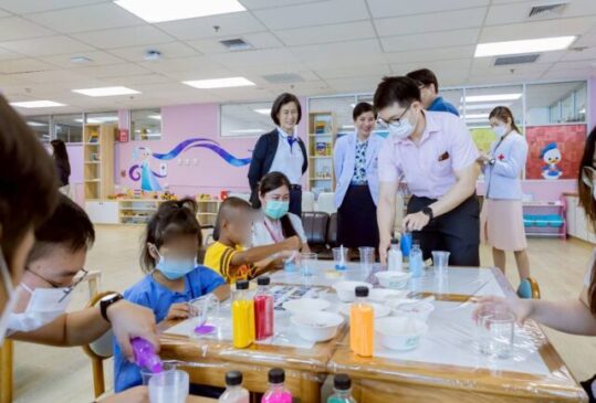 เมื่อวันที่ 22 เมษายน 2568 ศ.พญ.ดารินทร์ ซอโสตถิกุล หัวหน้าโครงการเด็กเจ็บป่วยเรื้อรังและศูนย์คอมพิวเตอร์เพื่อเด็กป่วยฯ โรงพยาบาลจุฬาลงกรณ์ สภากาชาดไทย ได้ให้การต้อนรับ คณะผู้บริหารและเจ้าหน้าที่ จาก บริษัท ปตท.จำกัด (มหาชน) นำโดย คุณเบญญาภรณ์ จารุจินดา ผู้ช่วยกรรมการผู้จัดการใหญ่ และคุณสวรา แขวงโสภา ผู้จัดการฝ่ายพัฒนาธุรกิจใหม่ และบริหารการลงทุน ซึ่งได้มาจัดกิจกรรมสนุกๆ ทั้ง เพ้นท์กระถางต้นไม้ เพ้นท์ปูนปั้น ตกแต่งเทียนเจล ภายใต้ชื่อโครงการ Volunteer : Smiles for little heroes รวมถึงมอบตุ๊กตา ของเล่น และสิ่งของต่างๆ ให้กับผู้ป่วยเด็ก ณ ห้องเรียนเด็กเจ็บป่วยเรื้อรัง ตึก สก. ชั้น 12 โรงพยาบาลจุฬาลงกรณ์ สภากาชาดไทย