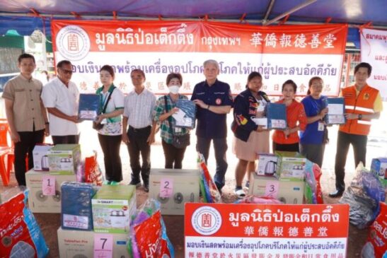มูลนิธิป่อเต็กตึ๊ง บรรเทาทุกข์ผู้ประสบอัคคีภัยในพื้นที่อำเภอพนมสารคาม จังหวัดฉะเชิงเทรา และ เขตธนบุรี กรุงเทพฯ มอบเงินช่วยเหลือพร้อมเครื่องอุปโภคบริโภค รวมมูลค่ากว่า 3 แสนบาท