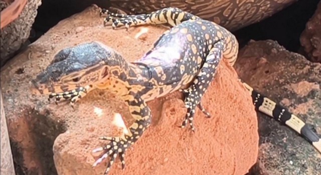 ผู้สื่อข่าวได้รับแจ้งจากนาง สาวณัฏฐ์วรรณ ทุมมา อายุ 51 ปีแม่ค้าร้านขายกาแฟท้ายตลาดสดเทศบาลเมืองนครนายก ว่าทุกๆวันลูกตัวเงินตัวทอง(หรือน้องลูซี่)ที่ชาวบ้านตั้งชื่อให้จะออกจากท่อระบายน้ำแถวหน้าร้านสะดวกซื้อแล้วเดินมาเกาะอยู่บนกระถางต้นไม้เป็นประจำ ชาวบ้านเดินมาจ่ายตลาดเเดินผ่านใกล้ๆเขาก็ไม่หนีและมีอยู่วันหนึ่งน้องลูซี่เขาคลานข้ามถนนไปที่ร้านกาแฟที่พวกแม่ค้าเพื่อนๆกำลังนั่งดื่มกันอยู่เขาก็คลานมาใกล้ๆคนทำให้นักดื่มต่างลุกวิ่งหนีกระเจิงด้วยความตกใจ แล้วมาวันนี้เจ้าลูซี่ก็ออกมาให้ยลโฉมอีกจึงได้ไปขอดูป้ายร้านของเจ้าของบ้านเพื่อจะนำไปเสี่ยงโชคใกล้วันหวยออก เลขที่ได้บ้านเลขที่ ข 1 086/5 โทร 037311279