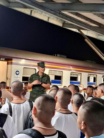 ศูนย์ฝึกทหารใหม่ รับรายงานตัวทหารใหม่ ผลัดที่ 1/68 วันที่ 2 ที่เดินทางโดยรถไฟจากภาคใต้ จำนวน 1,040 นาย เข้ามาเป็นครอบครัวกองทัพเรือ ”ยินดีต้อนรับ น้องคนเล็กจากภาคใต้”