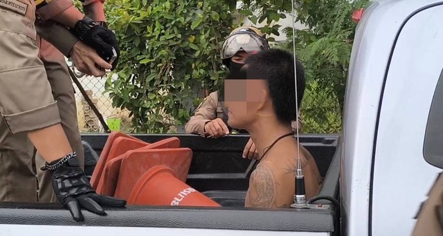 นครนายก-หนุ่มเพิ่งออกคุกได้1วันหลอนยาบ้าพกอาวุธเข้าซอยโวยวายจะฆ่าคนในซอยให้ตายตำรวจคุมตัวส่งโรงพักหาสารเสพติด