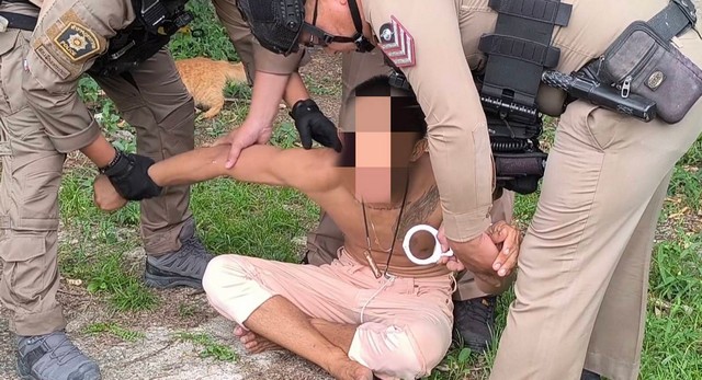 สายตรวจรถจักรยานยนต์และกู้ภัยร่วมกตัญญูนครนายก ให้ใช้ความระมัดระวังด้วยเนื่องจากรับแจ้งว่าหนุ่มหลอนยาบ้ามีอาวุธ เจ้าหน้าที่ตำรวจพร้อมกู้ภัยฯไปยังที่เกิดเหตุในหมู่บ้านอุดมทรัพย์ ซอย 8 ไม่พบตัวหนุ่มหลอนยาบ้ารับแจ้งจากชาวบ้านว่าหลบหนีออกไปจากซอยแล้ว จึงได้ออกติดตามตัวหนุ่มหลอนยาบ้าไปพบหลบอยู่ในบ้าน ซึ่งมีบ้านอาศัยอยู่หน้าปากทางหมู่บ้านจึงได้เข้าไปควบคุมตัวส่งสถานีตำรวจภูธรเมืองนครนายก เพื่อตรวจสารเสพติดและจะได้ดำเนินคดีต่อไป