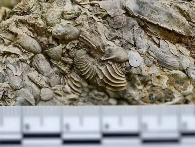 มีซากดึกดำบรรพ์หอยสองฝา หอยฝาเดียว ที่มีความแตกต่างกันมากกว่า 5 ชนิด ขนาดตั้งแต่ 0.5 ถึง 5 เซนติเมตร อัดแน่นอยู่ในชั้นหินดาน เมื่อพิจารณาลักษณะเนื้อหินและซากดึกดำบรรพ์ที่พบ หินดังกล่าวจัดอยู่ในหมวดหินคลองมีน ยุคจูแรสซิก (อายุประมาณ 200 ถึง 145 ล้านปี) มีสภาพแวดล้อมการสะสมตัวแบบทะเลสาบน้ำเค็มชายฝั่ง (lagoon)