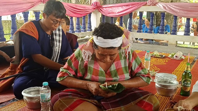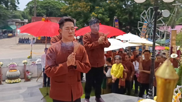 ซึ่งในระหว่างการประกอบพิธี ได้มีผู้เข้าร่วมพิธี เกิดอาการตัวสั่น เหมือนเจ้าเข้าร่าง พร้อมกับให้ชาวบ้านนำยาเส้นมาให้พัน และจุดไฟสูบบุหรี่ จากนั้นได้มีชาวบ้านมานั่งรุมล้อม ณ.บริเวณศาลาด้านหน้าฝั่งตรงข้ามอนุเสาวรีย์เจ้าฟ้าฮ่ามกุมมาร พร้อมกันกันชาวบ้านต่างพากันเข้าไปพูดคุยพร้อมกันนี้เจ้าที่เข้าได้มีการสวดคาถาพร้อมอวยพรโชค ให้กับผู้ที่เข้าไปร่วมพิธี