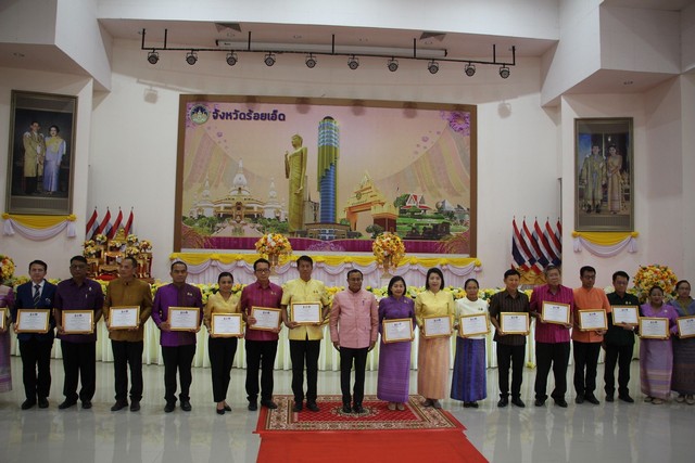 วันนี้ ( 15 พฤษภาคม )2568 เวลา 14.00 น. จังหวัดร้อยเอ็ดจัดพิธีมอบเกียรติบัตรยกย่องชุมชน องค์กร อำเภอ และจังหวัดคุณธรรมต้นแบบ ประจำปีงบประมาณ พ.ศ. 2567 โดยได้รับเกียรติจาก นายชัชวาลย์ เบญจสิริวงศ์ ผู้ว่าราชการจังหวัดร้อยเอ็ด เป็นประธานในพิธี พร้อมด้วยนายสมศักดิ์ สาโดด วัฒนธรรมจังหวัดร้อยเอ็ด ตลอนจนหัวหน้าส่วนราชการ และองค์กรปกครองส่วนท้องถิ่น เข้าร่วม ที่ หอประชุมจังหวัดร้อยเอ็ด อำเภอเมืองร้อยเอ็ด จังหวัดร้อยเอ็ด