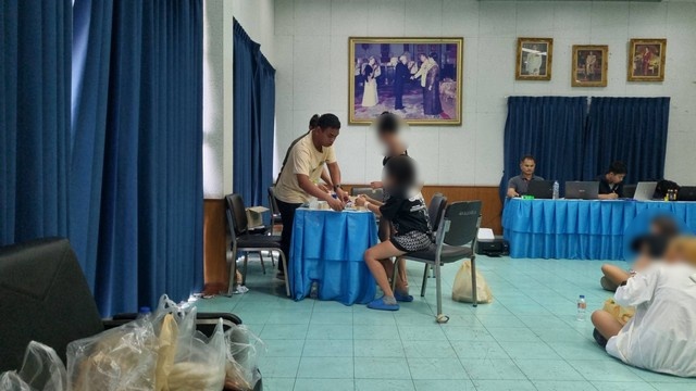 ความคืบหน้าล่าสุด ที่ห้องประชุมชั้น 4 สภ.บางละมุง พบว่ามีผู้ปัสสาวะเป็นสีม่วง 47 คน แบ่งเป็นเยาวชนอายุต่ำกว่า 18 ปี จำนวน 10 คน ซึ่งหนึ่งในนั้นมีอายุต่ำสุดเพียง 13 ปี ส่วนผู้ที่ไม่พบสารเสพติดมี 8 คน เจ้าหน้าที่ได้บันทึกประวัติไว้เป็นหลักฐาน