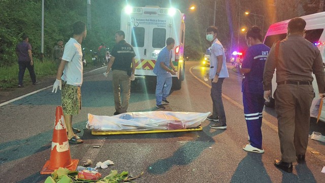 พังงา-หนุ่มใหญ่ชาวเนปาลขับมอเตอร์ไซค์ลงเขาแหกโค้งชนประสานงารถตู้รับส่งนักท่องเที่ยว ศรีษะฟาดถนนดับอนาถ