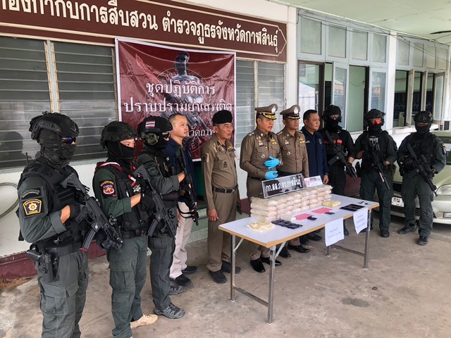 “ทั้งนี้ เมื่อเจ้าหน้าที่ตรวจสอบวัตถุดังกล่าว พบเป็นกระสอบบรรจุยาบ้า เจ้าหน้าที่จึงเข้าทำการควบคุมตัวไว้ ซึ่งผู้ต้องหาทั้ง 3 คน ให้การเบื้องต้นว่า ได้รับคำสั่งจากผู้ใช้เมสเซนเจอร์ ชื่อว่า “สิน ค้า’า” ซึ่งทราบว่านายกาฟิว (ไม่ทราบชื่อสกุลจริง) เป็นผู้ใช้งาน ให้ตนมารอรับรถยนต์ยี่ห้อ TOYOTA รุ่น soluna สีน้ำตาล หมายลทะเบียน กน 6281 มหาสารคาม ที่รีสอร์ทแห่งหนึ่ง ถนนมุกดาหาร-คำชะอี อ.เมืองมุกดาหาร จ.มุกดาหาร เพื่อนำยาบ้าไปวางตามจุดต่างๆ อ.ห้วยเม็ก จ.กาฬสินธุ์ จริง ซึ่งทั้ง 3 คนอ้างว่าทำเป็นครั้งแรก โดยถ้าวางยาบ้าตามจุดต่างๆ ได้เสร็จสิ้น จะได้รับค่าจ้างจำนวน 50,000 บาทและได้ค่าจ้างขนยาบ้ามาแล้วจำนวน 5,000 บาท โดยโอนเข้าบัญชีนายณัฐภูมิ (นามสมมุติ)เมื่อวันที่ 30 พ.ค.68” พล.ต.ต.ศิรสัณห์กล่าว