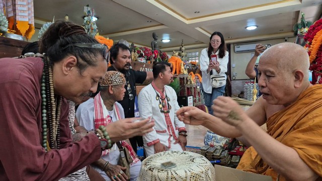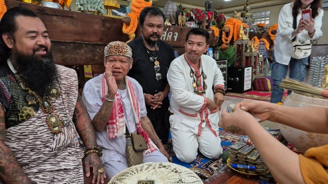 ทั้งนี้ทางพระครูสิทธิธรรมวิภัช หรือหลวงพ่อสำลี รักษาการเจ้าอาวาสวัดราชบูรณะ พระอารามหลวง ได้มอบพระนางพญารุ่นปาฏิหาริย์ พิมพ์เงินล้นทองเหลือให้กับคณะอาจารย์จอมขมังเวทย์ เป็นพระเนื้ออลูมินั่มบรอนด์ ได้ผ่านพิธีพุทธาภิเษกเรียบร้อยแล้ว หลังจากนั้นคณะจอมขมังเวทย์กราบลาหลวงพ่อสำลี โดยมีผู้ที่มาเจิมมือที่รู้จักอาจารย์จอมขมังเวทย์ ต่างขอถ่ายรูปเป็นที่ระลึก เนื่องจากไม่คิดว่าจะเจออาจารย์ขมังเวทย์พร้อมกันทีเดียวทั้ง 5 คน