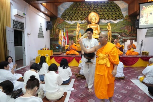 กิจกรรมครั้งนี้จัดขึ้นโดยมีพระครูภาวนาสรกิจ (พนาวัลย์ สุภโชโต) เจ้าอาวาสวัดพุทธชวากลาง, พระมหา ดร.วุฑฒ์ สุวุฑฺฒิโก, พระครูสมุห์สนิทวงศ์ วุฑฺฒิวํโส ผู้อำนวยการสำนักสื่อสารองค์กร วัดพระธรรมกาย , สมาคมพุทธศาสนามหานิกายอินโดนีเซีย (MBMI) และคณะสงฆ์จากวัดพุทธจามบี เป็นผู้นำทางจิตวิญญาณให้แก่เหล่าพุทธศาสนิกชน โดยบรรยากาศในพิธีตั้งแต่ช่วงเช้า คณะสงฆ์ได้ออกบิณฑบาตโปรดญาติโยมจากใจกลางเมืองจามบี เป็นระยะทางกว่า 5 กิโลเมตร ท่ามกลางศรัทธาอันเปี่ยมล้นของประชาชนกว่าหนึ่งพันคนที่มาร่วมใส่บาตรด้วยจิตใจเลื่อมใสในพระรัตนตรัย ต่อมาในช่วงสาย ได้มีการปฏิบัติธรรมพร้อมเชื่อมโยงจิตใจไปยังวัดพระธรรมกาย ประเทศไทย เพื่อร่วมกันสวดมนต์ บูชาพระรัตนตรัย และเจริญสมาธิภาวนา ถวายเป็นพุทธบูชาและพระราชกุศล