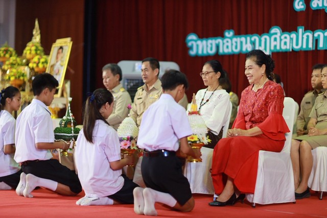 วันที่ 5 มิถุนายน 2568 ที่หอศิลปวัฒนธรรมกาฬสินธุ์ วิทยาลัยนาฏศิลปะกาฬสินธุ์ ดร.นิภา โสภาสัมฤทธิ์ อธิการบดีสถาบันบัณฑิตพัฒนศิลป์ เป็นประธานในพิธีไหว้ครู ประจำปีการศึกษา 2568วิทยาลัยนาฏศิลปกาฬสินธุ์ โดยมี ดร.จำเริญ แก้วเพ็งกรอ ผู้อำนวยการวิทยาลัยนาฏศิลปกาฬสินธุ์ คณะผู้บริหาร คณะครู อาจารย์ นักเรียน นักศึกษา และศิษย์เก่าร่วมพิธีอย่างพร้อมเพียง นอกจากนี้นางสุภาพร เกียรติดำเนินงาม เลขานุการ อบจ.กาฬสินธุ์ เป็นตัวแทนนางเฉลิมขวัญ หล่อตระกูล นายก อบจ.กาฬสินธุ์ มอบทุนการศึกษาและร่วมพิธีไหว้ครูวิทยนาฏศิลปกาฬสินธุ์
