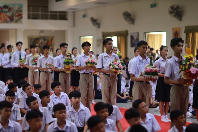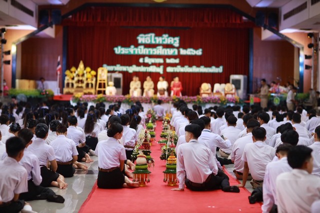 คณะผู้บริหาร คณะครู อาจารย์ นักเรียน นักศึกษา และศิษย์เก่าวิทยาลัยนาฏศิลปกาฬสินธุ์ร่วมกันจัดพิธีไหว้ครู ประจำปีการศึกษา 2568 แสดงถึงความเคารพแด่บูรพาจารย์และครูบาอาจารย์ ผู้ซึ่งประสิทธิ์ประสาทวิชาความรู้ให้แก่ศิษย์ ขณะที่นายก อบจ.กาฬสินธุ์มอบหมายเลขานุการมอบทุนการศึกษาและร่วมพิธี