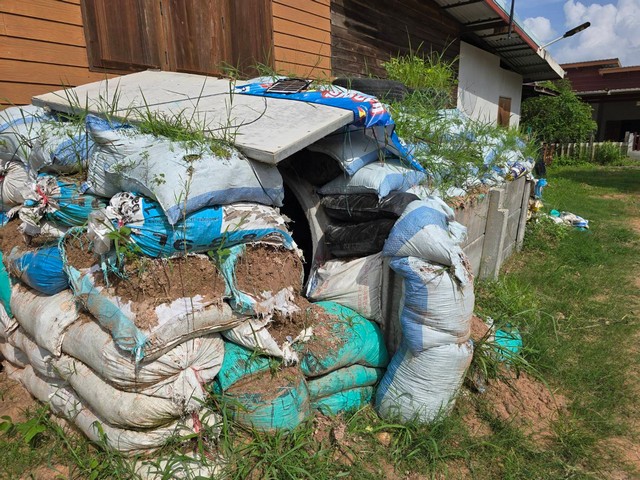อำเภอบ้านกรวด//ชาวบ้านแนวเขตชายแดนสร้างบังเกอร์ประจำครอบครัว เตรียมสัมภาระใส่รถพร้อมออกนอกพื้นที่หากเสียงปืนแตก เผยเคยประสบมาแล้วไม่อยากเสี่ยง เสียงปืนใหญ่หลบบังเกอร์ เสียงปืนเบาขับรถหนี