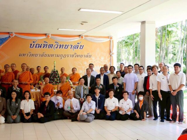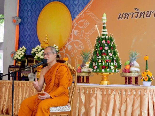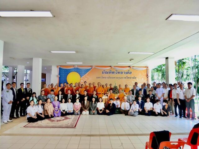 ในภาคเช้า มีพิธี บายศรีสู่ขวัญ เพื่อความเป็นสิริมงคลและการรับขวัญนักศึกษาใหม่สู่เส้นทางแห่งการศึกษา โดย อาจารย์อุตมะ ปภาภูธนะนันต์ นักศึกษาปริญญาเอก สาขาพุทธศาสนาและปรัชญา ได้รับเกียรติให้เป็นตัวแทนนักศึกษาในการถวายสังฆ์ โดยมี ดร.กฤตสุชิน พลเสน อาจารย์ประจำบัณฑิตวิทยาลัยฯ เป็นผู้ประกอบพิธี