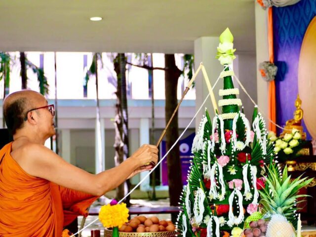 ในโอกาสนี้ พระครูปลัดสุวัฒนวิสุทธิสารคุณ, ผศ.ดร. รองอธิการบดีมหาวิทยาลัยมหามกุฏราชวิทยาลัย อาจารย์ประจำบัณฑิตวิทยาลัยวชิรญาณวโรรส ได้เมตตาเป็นประธานจุดเทียนบูชาเครื่องประกอบบายศรี สะท้อนถึงความศักดิ์สิทธิ์และการสืบสานขนบธรรมเนียมไทยอันทรงคุณค่า