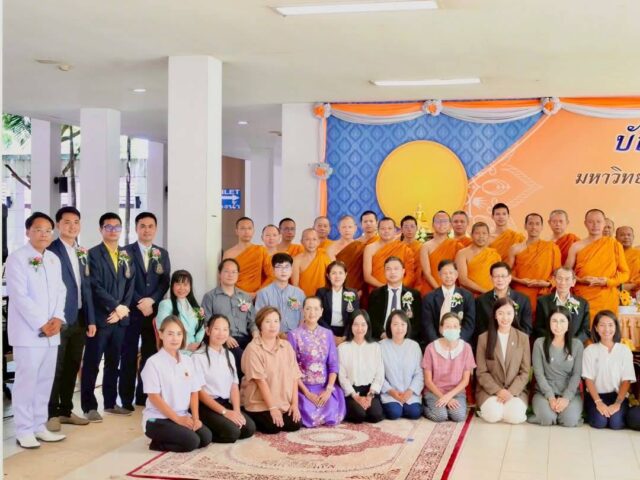 ในภาคเช้า มีพิธี บายศรีสู่ขวัญ เพื่อความเป็นสิริมงคลและการรับขวัญนักศึกษาใหม่สู่เส้นทางแห่งการศึกษา โดย อาจารย์อุตมะ ปภาภูธนะนันต์ นักศึกษาปริญญาเอก สาขาพุทธศาสนาและปรัชญา ได้รับเกียรติให้เป็นตัวแทนนักศึกษาในการถวายสังฆ์ โดยมี ดร.กฤตสุชิน พลเสน อาจารย์ประจำบัณฑิตวิทยาลัยฯ เป็นผู้ประกอบพิธี