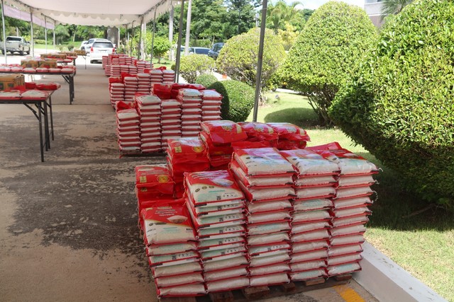 สำหรับ บรรยากาศ พบว่ามีประชาชน จำนวนมาก ทั้งเด็กและผู้ใหญ่ ผู้สูงอายุ มารอรับข้าวสาร อยู่บริเวณหน้าโรงแรมฯ ตั้งแต่ช่วงเช้า โดยมีเจ้าหน้าที่หน่วยกู้ภัยมูลนิธิสว่างโรจนธรรมสถานสัตหีบ เจ้าหน้าที่ฝ่ายปกครองอำเภอสัตหีบ คอยอำนวยความสะดวก จัดระเบียบ ดูแลความปลอดภัยช่วยเหลือประชาชน ก่อนจะจัดให้มีการแจกทาน ข้าวสาร ให้กับผู้อยากไร้ ผู้สูงอายุ ในพื้นที่สัตหีบ จำนวน 800 ชุด และเงินสดอีก 400บาท จำนวน 800 ชุด รวมเป็นเงิน 320,000 บาท เพื่อบรรเทาความเดือดร้อน สร้างรอยยิ้ม ให้กับประชาชนผู้ยากไร้ ผู้สูงอายุ ผู้พิการในพื้นที่
