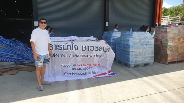 สอบถามนายอลงกรณ์ แซ่ตั้ง (ร้านเม้งการยาง) เปิดเผยว่า ตนมียางอยู่ 300-400 เส้น เลยลองโพสเฟสบุ๊คปรากฏว่ามีเพื่อนๆพี่และFCของตน แต่คนจะเอายางมาร่วมกับตน ตนเลยเป็นคนรวบรวมของจากทุกคนเอาไปให้กับทหาร ตอนนี้ตนรวบรวมยางได้ประมาณ 5,000 เส้น น้ำดื่ม 5,000 แพ็ค อาหารแห้ง เครื่องดื่มชูกำลัง กาแฟ ยากันยุง ถุงเท้า กางเกงใน ฯลฯ สิ่งของรวมๆกันประมาณ 7-8 คันรถ 6 ล้อ ตนจะส่งให้ตชด.ที่จ.บุรีรัมย์ 2 คันรถ และทหารพราน ที่ จ.สุรินทร์ ที่อยู่ใกล้แนวชายแดนไม่เกิน 10 กิโลเมตร อีก 4-5 คัน ซึ่งตนจะไปมอบด้วยตัวเอง ตนขอฝากให้กำลังใจทหารว่าให้สู้ๆนะครับ ขอขอเป็นตัวแทนชาวจ.ชลบุรีให้กำลังใจกับทหารแนวหน้าที่ช่วยประชาชนทั้งประเทศปกป้องประเทศไทย