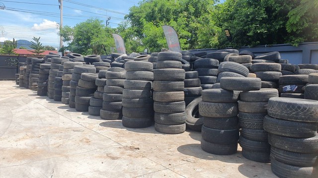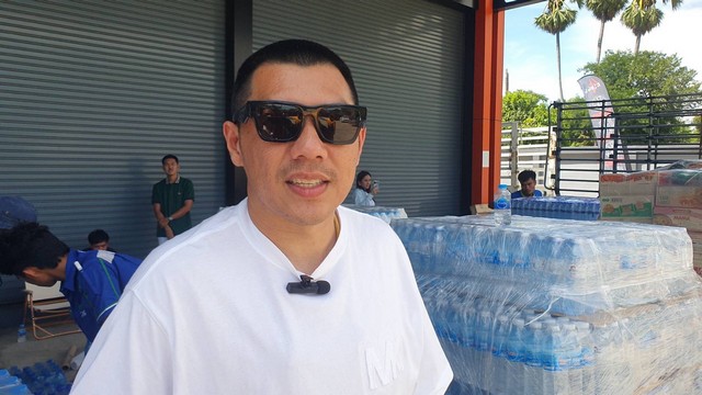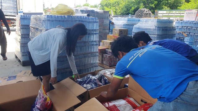 เมื่อเวลา 15.30 น.วันที่ 8 มิ.ย. 2568 ที่โกดัง บริษัท เอมเค เฟคตอรี่ จำกัด เลขที่ 168 หมู่ 2 ต.หนองรี อ.เมือง จ.ชลบุรี มีรถบรรทุก 8-10 คัน จอดเต็มบริษัท บนรถมียางรถยนต์ประมาณ 5 พันเส้น ส่วนด้านพื้นบริษัท มีนักธุรกิจชื่อดัง ทั้งชายและหญิง กำลังบรรจุสิ่งของใส่ถุงและกล่อง เช่น มาม่า ปลากระป๋อง น้ำดื่ม อาหารแห้งจำนวนมาก กางเกงใน ถุงรองเท้า ซึ่งน้ำดื่มนั้นมีกว่า 5 พัน แพ็ก ยางรถยนต์กว่า 5 พันเส้น ท่ามกลางอากาศร้อนแต่ทุกคนตั้งใจช่วยกันอย่างไม่ย่อท้อ