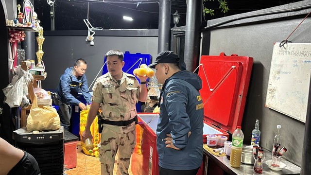 เมื่อเวลา 22.16 น.วันที่ 10 มิ.ย.68 นายพัชรพัชร์ ศรีธัญญนนท์ นายอำเภอบางละมุง สั่งการให้นายคำไพร เหลาแสน ปลัดอำเภอบางละมุง (เจ้าพนักงานปกครองปฏิบัติการ) พร้อมสมาชิกกองอาสารักษาดินแดนอำเภอบางละมุง นำกำลังไปจับกุมผู้ลักลอบจำหน่ายน้ำกระท่อมต้ม 4 คูน 100 ทั่วพื้นที่อำเภอบางละมุง จ.ชลบุรี สามารถจับกุมได้ทัังหมด 6 ร้าน พร้อมของกลางเป็นน้ำกระท่อมต้มกว่า 500 ขวด ยาแก้ไอที่ใช้เป็นส่วนผสม กว่า 1,500 ขวด