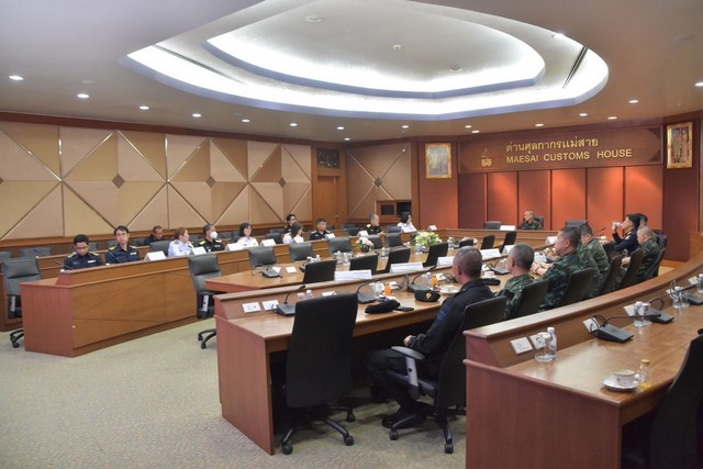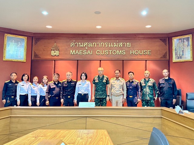 ต่อมา ได้เดินทางไปยังด่านศุลกากรแม่สาย เพื่อติดตามมาตรการควบคุมการส่งออกสินค้าผ่านแดน และสารเคมีที่อาจใช้เป็นสารตั้งต้นในการผลิตยาเสพติด พร้อมตรวจเยี่ยมการปฏิบัติงานของหน่วย ณ จุดผ่านแดนแม่สาย 2 ซึ่งเป็นส่วนหนึ่งของยุทธศาสตร์ “STOP”
