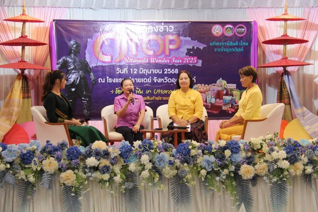 วันที่ 12 มิถุนายน 2568 เวลา 14.30 น. นายศิริวัฒน์ บุปผาเจริญ ผู้ว่าราชการจังหวัดอุตรดิตถ์ มอบหมายให้นางสาวนิรชา บัณฑิตย์ชาติ รองผู้ว่าราชการจังหวัดอุตรดิตถ์ เป็นประธานในการแถลงข่าวการจัดงาน “OTOP Uttaradit Wonder Fair 2025 มหัศจรรย์สินค้าไทย จากใจอุตรดิตถ์” พร้อมด้วยส่วนราชการที่เกี่ยวข้อง สื่อมวลชน เครือข่าย OTOP จังหวัดอุตรดิตถ์ เข้าร่วมการแถลงข่าว ณ ห้องคัทลียา ชั้น 4 โรงแรมฟรายเดย์ อำเภอเมืองอุตรดิตถ์ จังหวัดอุตรดิตถ์ การจัดแสดงและจำหน่ายสินค้า OTOP จังหวัดอุตรดิตถ์ในปีนี้