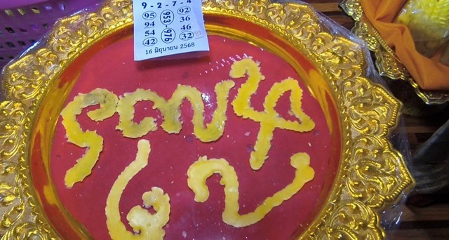 ที่วัดหลวงพ่อปากแดง ตำบลบ้านใหญ่ อำเภอเมือง จังหวัดนครนายก ผู้สื่อข่าวได้ลงพื้นที่วัดหลวงพ่อปากแดง อำเภอเมือง จังหวัดนครนายก พบนักท่องเที่ยวเดินทางมาจังหวัดนครนายก กันเป็นจำนวนมาก พร้อมเข้ามากราบไหว้บูชาองค์หลวงพ่อปากแดงศักดิ์สิทธิ์ที่ชาวจังหวัดนครนายกและนักท่องเที่ยวจากต่างจังหวัดให้ความเคารพนับถือ ได้เข้ามากราบไหว้บูชา ขอพร ขอโชคลาภ ธุรกิจการงาน แก้บน พร้อมลอดท้องช้าง กราบไหว้องค์ท้าวเวสสุวรรณองค์สีทอง ทำบุญปล่อยปลา และไหว้เรือโบราณเก่าแก่ พร้อมส่องเลขอ่างน้ำมนต์ที่เจ้าหน้าที่วัดหลวงพ่อปากแดงได้นำมาว่างใส่พานไว้ให้นักท่องเที่ยวได้ส่องเลขเด็ดใกล้วันหวยออก มีเลข 9 7 4 8 2 เป็นต้น