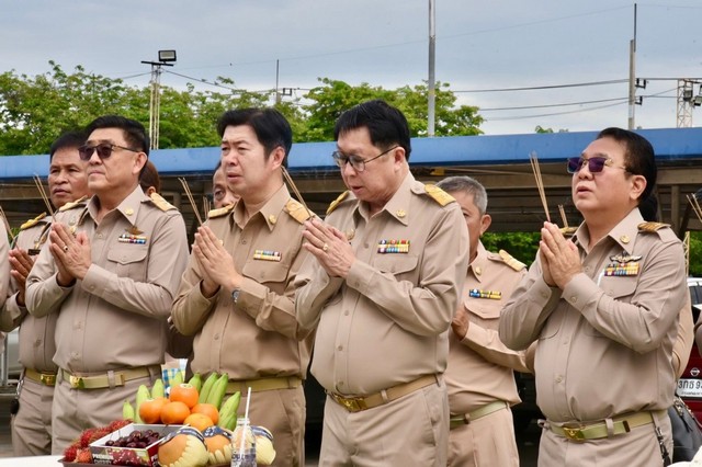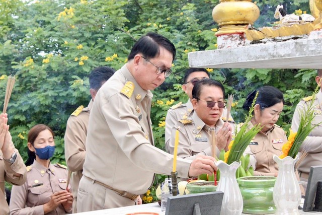 นครปฐม-นายกเทศมนตรีตำบลสามง่ามพร้อมคณะผู้บริหารและสมาชิกสภาเทศบาลนำพวงมาลัยสักการะสิ่งศักดิ์สิทธิ์