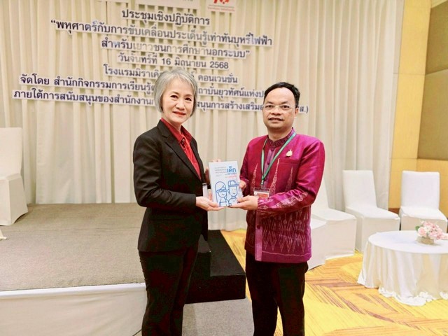 วันที่ 16 มิถุนายน 2568 นายรัชชสิทธิ์ มนตรี รองผู้อํานวยการสํานักงานศูนย์ส่งเสริมการเรียนรู้ประจํากรุงเทพมหานคร ปฏิบัติหน้าที่ผู้อำนวยการ ศูนย์ส่งเสริมการเรียนรู้กลุ่มเป้าหมายพิเศษ (ศกพ.) กรมส่งเสริมการเรียนรู้ (สกร.) กระทรวงศึกษาธิการ (ศธ.) ร่วมเวทีเสวนาการประชุมเชิงปฏิบัติการ เรื่อง “พหุศาสตร์กับการขับเคลื่อนประเด็นรู้เท่าทันบุหรีไฟฟ้า เพื่อสร้างการรับรู้และแลกเปลี่ยนนโยบายหรือมาตรการเกี่ยวกับการแก้ไขปัญหาภัยสุขภาพของคนรุ่นใหม่ในปัจจุบัน และการนำเสนอผลงานการขับเคลื่อนงานสร้างเสริมสุขภาพในกลุ่มเด็กและเยาวชน เพื่อรู้เท่าทันบุหรี่ไฟฟ้าในกลุ่มเด็กและเยาวชนการศึกษานอกระบบ และเพื่อการปกป้องเด็กและเยาวชนจากภัยอันตรายของบุหรี่และบุหรี่ไฟฟ้า