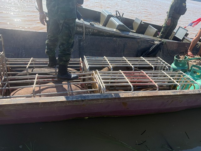 เมื่อวันที่ 17 มิถุนายน 2568 นาวาโท รุ่งเรือง มาสุทธิ หัวหน้าสถานีเรือมุกดาหาร ได้นำกำลังเจ้าหน้าที่ร่วมกับฝ่ายความมั่นคงในพื้นที่ ออกลาดตระเวนบริเวณบ้านหว้านน้อย ต.หว้านใหญ่ อ.หว้านใหญ่ จ.มุกดาหาร กระทั่งเวลา 05.30 น. ตรวจพบเรือเหล็กติดเครื่องยนต์ลำหนึ่ง ล่องมาจากฝั่ง สปป.ลาว เข้าจอดริมตลิ่งแม่น้ำโขง เจ้าหน้าที่จึงได้เข้าตรวจสอบพบชายฉกรรจ์ประมาณ 5 คน กำลังลำเลียงกรงเหล็กบรรจุสุกรมีชีวิต 7 กรง