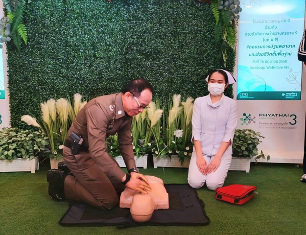 โรงพยาบาลพญาไท 3 ร่วมกับ กองบังคับการตำรวจนครบาล 9 จัดอบรมการปฐมพยาบาลและ ช่วยชีวิตขั้นพื้นฐาน (CPR)เพิ่มโอกาสการรอดชีวิตให้แก่เจ้าหน้าที่ตำรวจ กองบังคับการตำรวจนครบาล 9 และจิตอาสา เจ้าหน้าที่ตำรวจ สน.ภาษีเจริญเจ้าหน้าที่ ตำรวจฝอ.บก.น.9 ตลอดพลเรือน ร่วมทำความดีด้วยหัวใจเพื่อคนที่คุณรักและห่วงใย