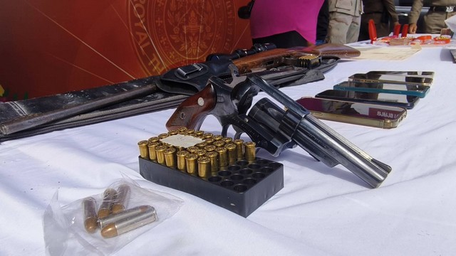 พร้อมของกลาง อาวุธปืนพกสั้น ขนาด .38 จำนวน 1 กระบอก อาวุธปืนยาวลูกกลด ไม่มีทะเบียน 1 กระบอก เครื่องกระสุนขนาด .38 จำนวน 41 นัด รถยนต์กระบะ 3 คัน รถยนต์เก๋ง 2 คัน จักรยานยนต์ 1 คัน วัว 30 ตัว เครื่องทองรูปพรรณรวมน้ำหนักประมาณ 20 บาท โฉนดที่ดินพร้อมสิ่งปลูกสร้าง 2 แปลง เงินสด 200,000 แสนบาท รวมเป็นมูลค่ากว่า 10 ล้านบาท ขณะเจ้าหน้าที่ทำการตรวจยึดของกลางดังกล่าวเพื่อตรวจสอบที่มาของทรัพย์สิน เบื้องต้นได้แจ้งข้อกล่าวหาว่า “สมคบตั้งแต่สองคนขึ้นไปเพื่อกระทำความผิดร้ายแรงเกี่ยวกับยาเสพติด และได้มีการกระทำความผิดร้ายแรงเกี่ยวกับยาเสพติดติดเพราะเหตุที่ได้มีการสบคมกัน จำหน่ายโดยการมีไว้เพื่อจำหน่ายและจำหน่ายซึ่งยาเสพติดให้โทษใน (เฟตามีน)อันเป็นการกระทำเพื่อการค้าและก่อให้เกิดการแพร่กระจายในกลุ่มประชาชน ” มีอาวุธปืนและเครื่องกระสุน ไว้ในครอบครองโดยไม่ได้รับอนุญาต เบื้องต้น นายสิทธิพันธ์ ให้การรับสารภาพตลอดข้อกล่าวหา