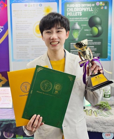 (4) ผลงาน Advanced electrochemical innovation combined with a nanobubble system for seafood transportation business ได้รับรางวัล Gold Medal และ NRCT Special Award โดยนายวัชรพงษ์ นารีจันทร์ น.ส.นวลลออ ยามาโอะ และรศ.ดร.ฉัตรชัย พลเชี่ยว คณะวิทยาศาสตร์และเทคโนโลยี พร้อมด้วย รศ.ดร.สรพงษ์ ภวสุปรีย์ คณะวิศวกรรมศาสตร์ และบริษัท วอเทอร์ป๊อก จำกัด (5) ผลงาน Innovative triple-action anti-aging facial scrub, mask and serum incorperating Golden flower extract beads prepared by synergistics Niosomes and Fluid-Bed coating technology ได้รับรางวัล Gold Medal และ NRCT Special Award โดย รศ.ดร.กรวินวิชญ์ บุญพิสุทธินันท์ คณะการแพทย์บูรณาการ ร่วมกับบริษัท ริชโกลด์บิวตี้แอนด์เฮลท์ จำกัด (6) ผลงาน Fluid- Bed drying of Chlorophyll petlets: An anti-oxidant with superior stability and controlled release ได้รับรางวัล Gold Medal และ NRCT Honorable Mention Award โดย รศ.ดร.กรวินวิชญ์ บุญพิสุทธินันท์ คณะการแพทย์บูรณาการ ร่วมกับ บริษัท ริชโกลด์บิวตี้แอนด์เฮลท์ จำกัด
