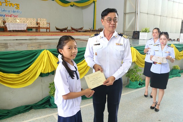นายภุมรินทร์ สมนวลกล่าวว่า วันนี้รู้สึกดีใจ ประทับใจอย่างยิ่ง ที่ได้เห็นเหล่านักเรียน นักศึกษาได้ตั้งใจมาร่วมกันแสดงมุทิตาจิตกับครู อาจารย์ที่สอนสั่งวิชาให้ เป็นภาพสะท้อนให้เห็นว่าเป็นการแสดงออกถึงความกตัญญู รู้คุณเป็นสิ่งดีงาม เป็นมงคลชีวิตแก่ผู้ปฎิบัติ ยิ่งถ้าประกอบด้วยความกตเวที คือการตอบแทนคุณ ควบคู่ไปแล้ว ก็นับเป็นมงคลยิ่งขึ้นไปอีก การตอบแทนคุณสามารถทำได้ โดยการตั้งใจเล่าเรียน ประพฤติตนเป็นเป็นนักศึกษาที่ดี ซึ่งการสร้างคุณงามความดีจะส่งผลก่อให้เกิดประโยชน์แก่ตัวเอง ครอบครัว สถาบันการศึกษา สังคม และประเทศชาติสืบต่อไป และในวันนี้ ยังได้มีพิธีมอบโล่ประกาศเกียรติคุณ ประจำปี 2568 แก่นักเรียนที่มีผลการเรียนดี เพื่อเป็นการสร้างขวัญและกำลังใจให้นักเรียนนักศึกษาทุกคน อีกด้วย