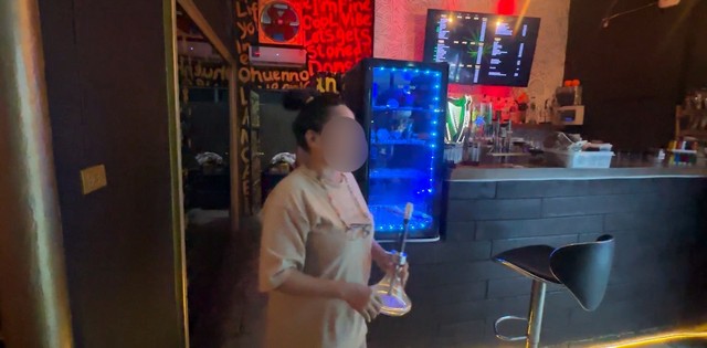 เจ้าหน้าที่เข้าตรวจสอบ พบ นางจานดา (Mrs.Sandar) อายุ 41 ปี สัญชาติ เมียนมาร์ กำลัง เสิร์ฟน้ำ เสิร์ฟบารากุให้กับลูกค้าที่มาใช้บริการภายในร้าน ได้ขอตรวจสอบหนังสือเดินทางหรือเอกสารที่ใช้แทนหนังสือเดินทาง พบว่าในหนังสือเดินทาง ทำงานในตำแหน่ง กรรมกร อนุญาตให้ทำงานถึงวันที่ 31 มีนาคม 2569