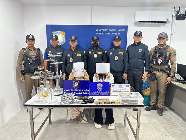 เมื่อเวลา 20.30น.วันที่ 19 มิถุนายน 2568 เจ้าหน้าที่ตำรวจท่องเที่ยวเกาะพะงันได้รับการร้องเรียนจากพลเมืองดี มีร้านจำหน่ายกัญชา จำหน่ายบารากุหรือชิช่าให้กับนักท่องเที่ยวที่มาใช้บริการ บริเวณตลาดพันธ์ทิพย์ ชื่อร้าน Dons ม.1 ต.เกาะพะงัน อ.เกาะพะงัน จ.สุราษฎร์ธานี เจ้าหน้าที่ตำรวจชุดจับกุมจึงได้ไปยังพิกัดที่ได้รับแจ้ง พบเห็นร้าน Dons มีลูกค้าจำนวน 3 โต๊ะกำลังนั่งดูดบารากุอยู่ภายในร้าน