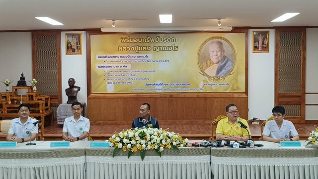 ยโสธร คณะศิษยานุศิษย์หลวงปู่แสง ญาณวโร อดีตเจ้าอาวาสวัดป่าดงสว่างธรรม ร่วมจัดแถลงข่าวและพิธีมอบทรัพย์มรดกเพื่อสาธารณประโยชน์ให้แก่โรงพยาบาล