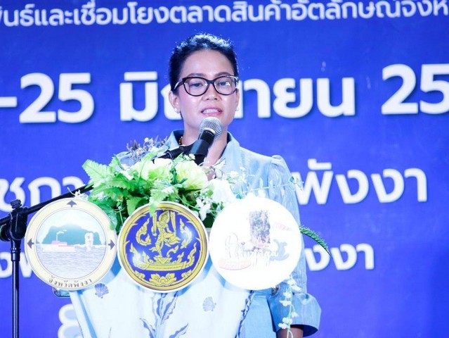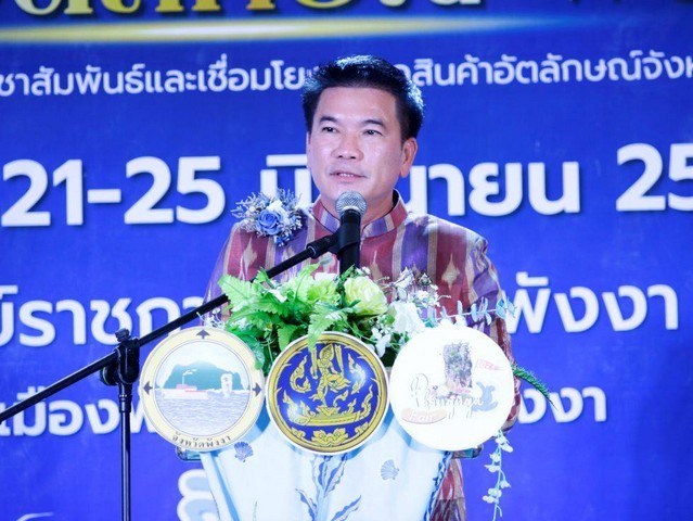 โดยนางสาวกัลยรักษ์ เพชรอาวุธ พาณิชย์จังหวัดพังงา กล่าวรายงานการจัดงาน และมีหัวหน้าส่วนราชการ พร้อมด้วยภาคเอกชนเข้าร่วมงานดังกล่าวซึ่งงานกำหนดจัดขึ้นระหว่างวันที่ 21-25 มิถุนายน 2568 ได้จัดทัพสินค้าอัตลักษณ์ท้องถิ่นกว่า 80 ร้านค้า อาทิ สินค้า GI ทุเรียนสาลิกาพังงา, ข้าวไร่ดอกข่าพังงา, มังคุดทิพย์พังงา, ปลิงทะเลเกาะยาว ผลิตภัณฑ์จากข้าวไร่ดอกข่า, อาหารแปรรูปเกาะปันหยี, ปลาฉิ้งฉ้างเกาะยาว และสินค้าอื่นๆ ขนมเต้าส้อ, เครื่องประดับมุก, ผ้าบาติกพังงาภายในงานยังมีกิจกรรมจับคู่ธุรกิจ (BUSINESS MATCHING)
