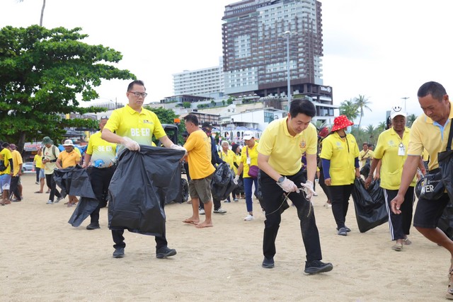 เมืองพัทยาผนึกกำลังภาคี 600 คน จัดกิจกรรม Big Cleaning Day เก็บขยะชายหาดกลางเมือง รอน้ำลดลุยล้างทะเล