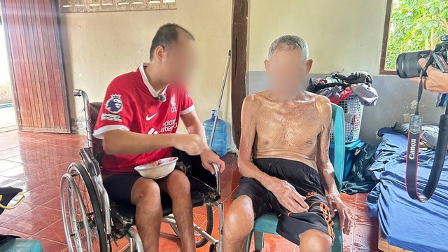 อำเภอห้วยราช/หนุ่มพิการนั่งวีลแชร์วัย 34 ปีเลี้ยงตาวัย 85 ปีตามลำพัง เงินเดือนพิการ-เบี้ยคนชราพออยู่ได้ แต่มาเจอข่าวร้ายน้าชายคือลูกชายของตา แอบเอาโฉนดที่นา 10 ไร่และบ้านพร้อมที่ดิน 2 งานไปกู้นอกระบบ 5 แสนผ่านมาแล้ว 4 ปี แล้วหนีไป ตาถึงกับช็อคป่วยซึมเศร้ายังไม่รู้จะไปอยู่ที่ไหนหากนายทุนไล่ที่