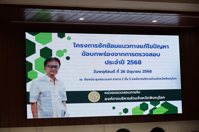 วันที่ 26 มิถุนายน 2568 นายมนต์ชัย วิวัฒน์ธนาฒย์ นายกองค์การบริหารส่วนจังหวัดพิษณุโลก มอบหมายให้ นายเชาวฤทธิ์ ฉายะกูล รองนายกองค์การบริหารส่วนจังหวัดพิษณุโลก เป็นประธานในพิธีเปิดโครงการซักซ้อมแนวทางแก้ไขปัญหาข้อบกพร่องจากการตรวจสอบ ประจำปี 2568 ณ ห้องประชุมพระนเรศ อาคาร 2 ชั้น 5 สำนักงานองค์การบริหารส่วนจังหวัดพิษณุโลก อำเภอเมืองพิษณุโลก โดยมี นางสาวขวัญรักษ์ หมื่นศรีชัย หัวหน้าหน่วยตรวจสอบภายใน องค์การบริหารส่วนจังหวัดพิษณุโลก กล่าวรายงานวัตถุประสงค์ของโครงการ