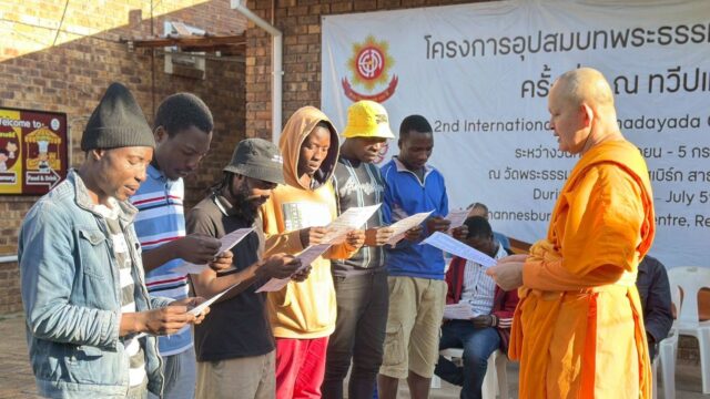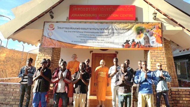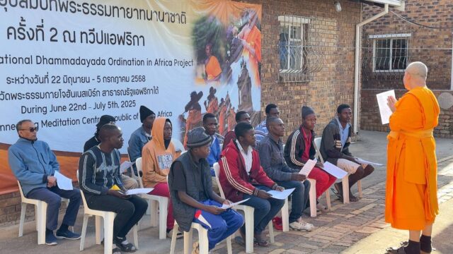 วันที่ 26 มิถุนายน 2568 พระครูสมุห์สนิทวงศ์ วุฑฺฒิวํโส ผู้อำนวยการสำนักสื่อสารองค์กร วัดพระธรรมกาย จังหวัดปทุมธานี เปิดเผยว่า สองวัดไทยในโจฮันเนสเบิร์ก – เคปทาวน์ ในประเทศแอฟริกาใต้ จัดบวชพระ 81 รูป เผยแผ่พระพุทธศาสนาในแอฟริกาใต้ ฉลอง 20 ปี “Peace for Africa” ปลูกฝังศีลธรรมให้แก่เยาวชนในต่างแดน และเชื่อมความสัมพันธ์ระหว่างวัฒนธรรม