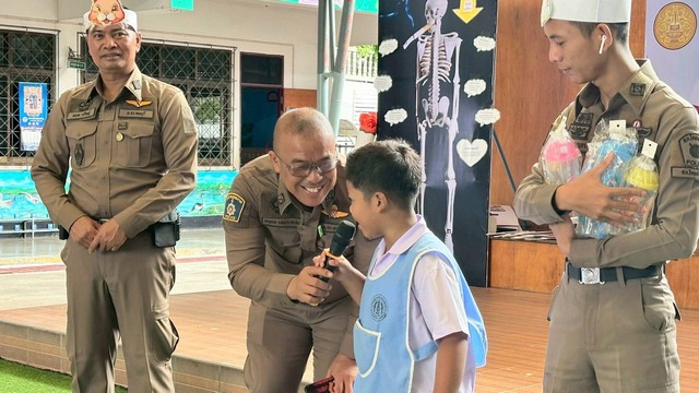 วันที่ 26 มิ.ย.68 เวลา 09.30 น. สภ. โคกสำโรง ภายใต้การอำนวยการของ พ.ต.อ.จาตุรนต์ อนุรักษ์บัณฑิต ผกก.ฯ พ.ต.ท.มนตรี เล่ห์อิ่ม รอง ผกก.ป.ฯ พ.ต.ท.องอาจ เนียมศรีเพชร สวป.ฯ โดย พ.ต.ต.ชยพล ตรีโอษฐ์ สวป.(ชส.)ฯ ร.ต.อ.โกวิทย์ พลั่วพันธ์ รอง สวป.(ชส.)ฯ ด.ต.พฤกษ เหมาะสมัย ผบ.หมู่(ป.)ฯ ส.ต.ต.ศรัณญ์ บุญภาพ ผบ.หมู่(ผช.พงส.)ฯ ร่วมกิจกรรม วันต่อต้านยาเสพติดโลก 26 มิ.ย.2568 กับโรงเรียนอนุบาลเทศบาลตำบลโคกสำโรง ด้วยการเดินรณรงค์ และบรรยายให้ความรู้เกี่ยวกับผลกระทบของยาเสพติด โดย มีนางสาวกัญญ์ดา ศรพรหมกุล รองปลัดเทศบาลตำบลโคกสำโรง รักษาการผู้อำนวยการสถานศึกษาโรงเรียนอนุบาลเทศบาลตำบลโคกสำโรง คณะครู บุคลากร และนักเรียน หน่วยงาน ภาครัฐ ประชาชนชาวโคกสำโรง ร่วมกิจกรรม