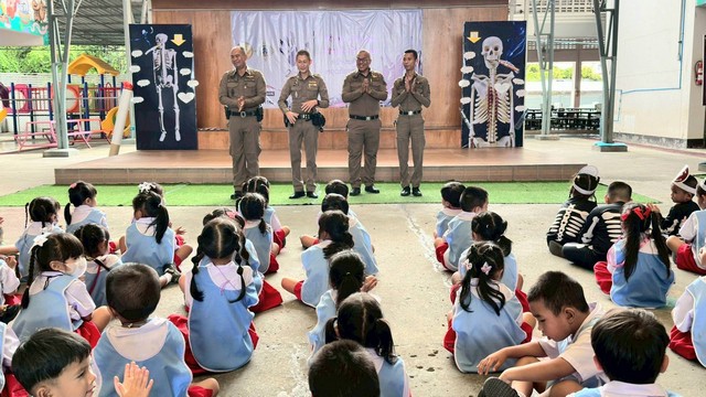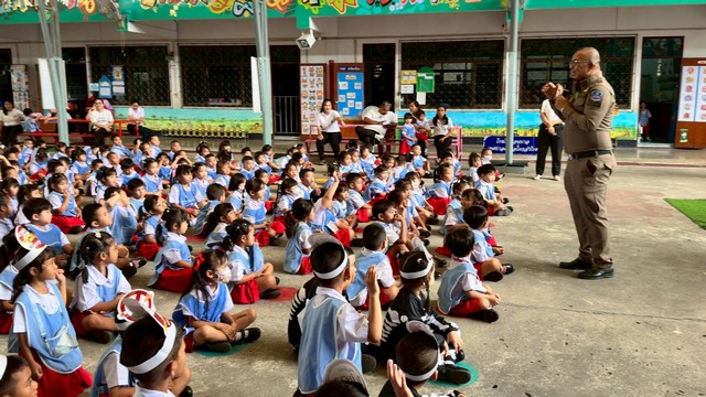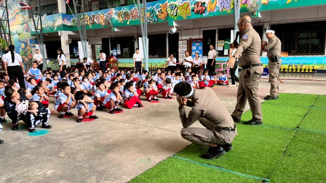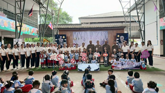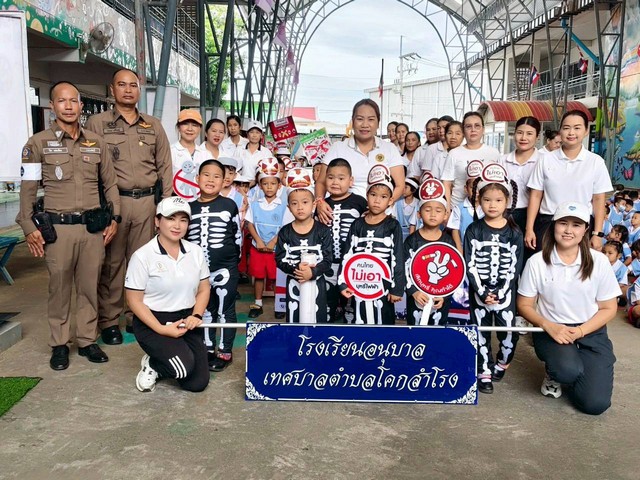 วันที่ 26 มิ.ย.68 เวลา 09.30 น. สภ. โคกสำโรง ภายใต้การอำนวยการของ พ.ต.อ.จาตุรนต์ อนุรักษ์บัณฑิต ผกก.ฯ พ.ต.ท.มนตรี เล่ห์อิ่ม รอง ผกก.ป.ฯ พ.ต.ท.องอาจ เนียมศรีเพชร สวป.ฯ โดย พ.ต.ต.ชยพล ตรีโอษฐ์ สวป.(ชส.)ฯ ร.ต.อ.โกวิทย์ พลั่วพันธ์ รอง สวป.(ชส.)ฯ ด.ต.พฤกษ เหมาะสมัย ผบ.หมู่(ป.)ฯ ส.ต.ต.ศรัณญ์ บุญภาพ ผบ.หมู่(ผช.พงส.)ฯ ร่วมกิจกรรม วันต่อต้านยาเสพติดโลก 26 มิ.ย.2568 กับโรงเรียนอนุบาลเทศบาลตำบลโคกสำโรง ด้วยการเดินรณรงค์ และบรรยายให้ความรู้เกี่ยวกับผลกระทบของยาเสพติด โดย มีนางสาวกัญญ์ดา ศรพรหมกุล รองปลัดเทศบาลตำบลโคกสำโรง รักษาการผู้อำนวยการสถานศึกษาโรงเรียนอนุบาลเทศบาลตำบลโคกสำโรง คณะครู บุคลากร และนักเรียน หน่วยงาน ภาครัฐ ประชาชนชาวโคกสำโรง ร่วมกิจกรรม