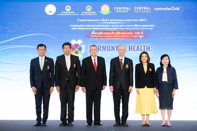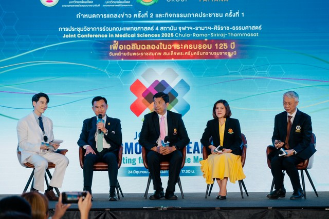 คณะแพทยศาสตร์ 4 สถาบัน ร่วมจัดงานแถลงข่าวครั้งที่ 2 และกิจกรรมภาคประชาชนครั้งที่ 1 ในการประชุมวิชาการร่วมคณะแพทยศาสตร์ 4 สถาบัน ระหว่างคณะแพทยศาสตร์ จุฬาลงกรณ์มหาวิทยาลัย คณะแพทยศาสตร์โรงพยาบาลรามาธิบดี มหาวิทยาลัยมหิดล, คณะแพทยศาสตร์ศิริราชพยาบาล มหาวิทยาลัยมหิดล และคณะแพทยศาสตร์ มหาวิทยาลัยธรรมศาสตร์ ภายใต้หัวข้อ JCMS 2025: Harmony in Health – Innovating for Sustainable Medicine และร่วมเฉลิมฉลองในวาระครบรอบ 125 ปี วันคล้ายวันพระราชสมภพสมเด็จพระศรีนครินทราบรมราชชนนี