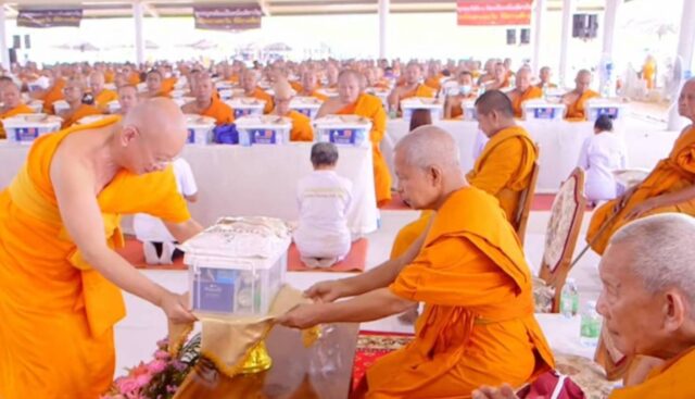 ทั้งนี้พิธีถวายสังฆทานแด่คณะสงฆ์ 323 วัด 4 จังหวัดชายแดนภาคใต้ จัดขึ้นโดยวัดพระธรรมกาย มูลนิธิธรรมกาย ร่วมกับพุทธบริษัท วัตถุประสงค์เพื่อถวายเป็นพุทธบูชา รักษาแสงธรรมไม่ให้ดับสูญไปจากดินแดนภาคใต้ พร้อมกับสร้างขวัญและกำลังใจแก่พุทธศาสนิกชนในพื้นที่ให้เข้มแข็งขึ้น จัดครั้งแรกเมื่อวันที่ 7 มิถุนายน พ.ศ. 2548 ณ วัดมุจลินทวาปีวิหาร จังหวัดปัตตานี ปัจจุบันจัดติดต่อกันเป็นปีที่ 21 ครั้งที่ 178 และจัดอย่างต่อเนื่องจนกว่าเหตุการณ์จะสงบ ส่วนกองทุนหนุนแรงใจช่วยครูใต้ มอบแล้ว 40,000 กว่ากองทุน ข้าวสารอาหารแห้งมอบช่วยเหลือพระสงฆ์เจ้าหน้าที่ตำรวจ ทหาร ครู และประชาชน ในพื้นที่เสี่ยงภัยกว่า 6,000 ตัน