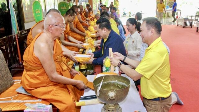 นอกจากมอบน้ำสะอาด กลุ่มยังได้จัดเลี้ยงอาหารกลางวันให้แก่เด็กนักเรียนกว่า 1,015 คน พร้อมทั้งถวายภัตตาหารเพลแด่พระภิกษุสงฆ์